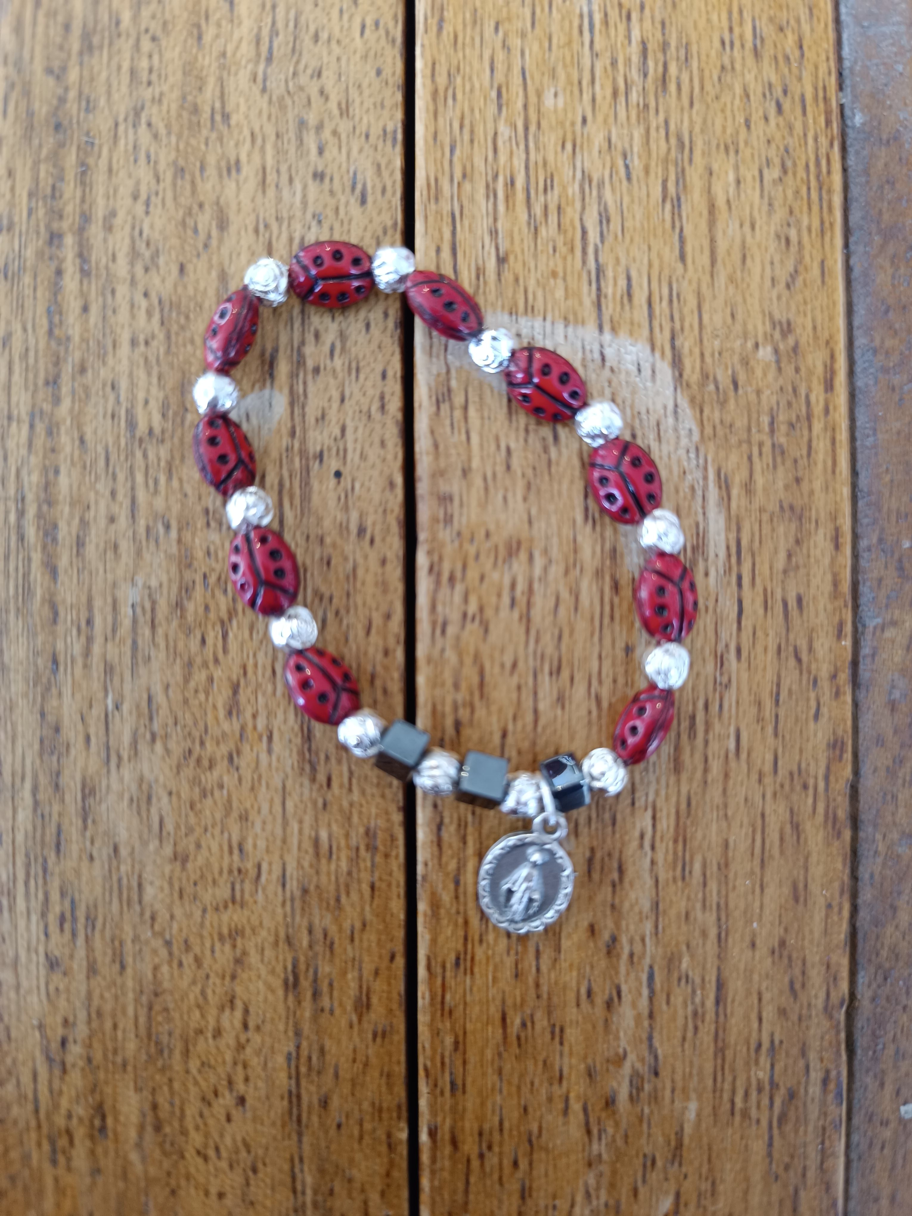 Dizainier bracelet coccinelle et vierge miraculeuse (DZ19)
