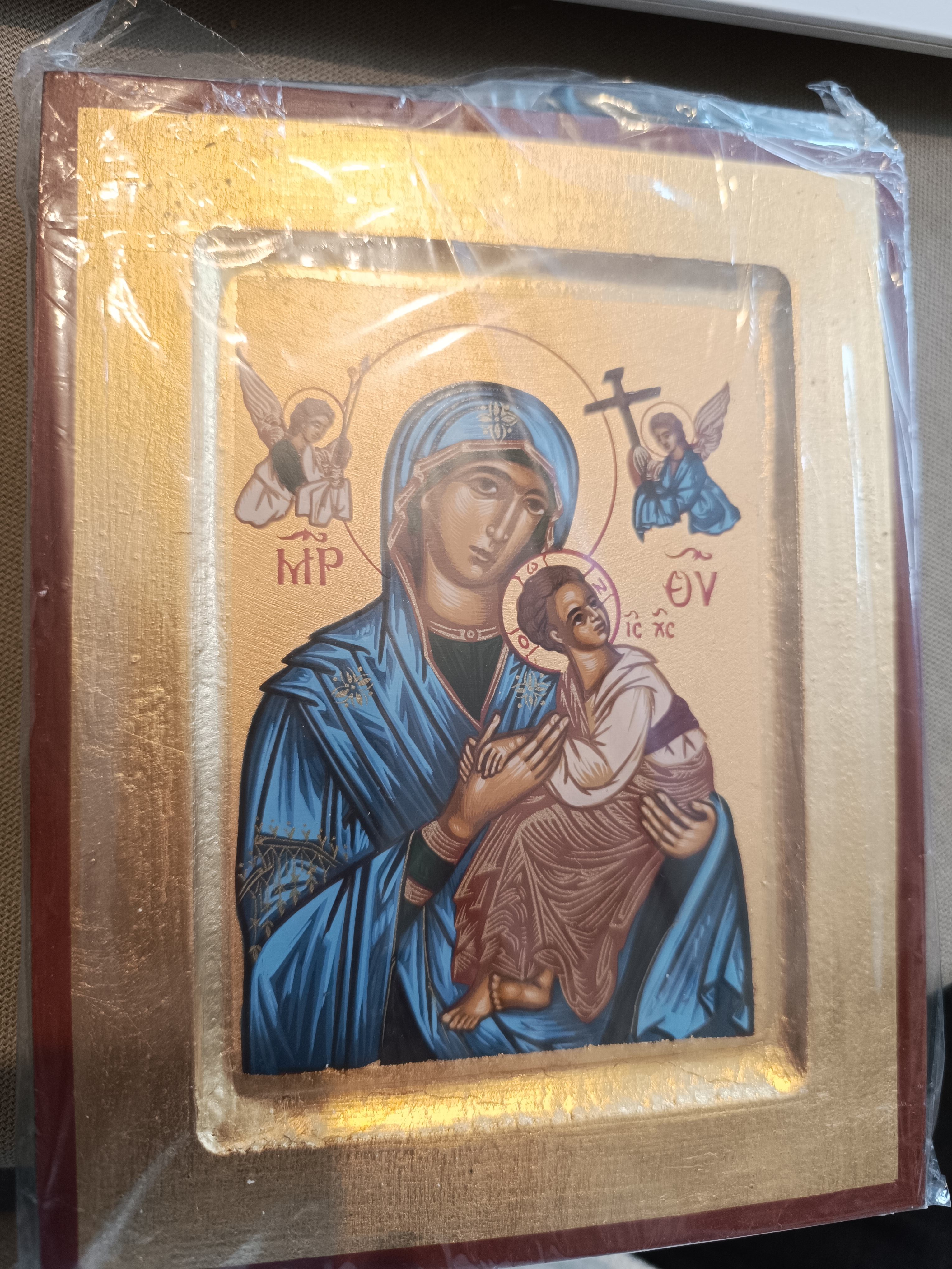 Icone en bois serigraphiee H.18x14 cm, de ND du Perpétuel Secours bleue Quantité : 1 |