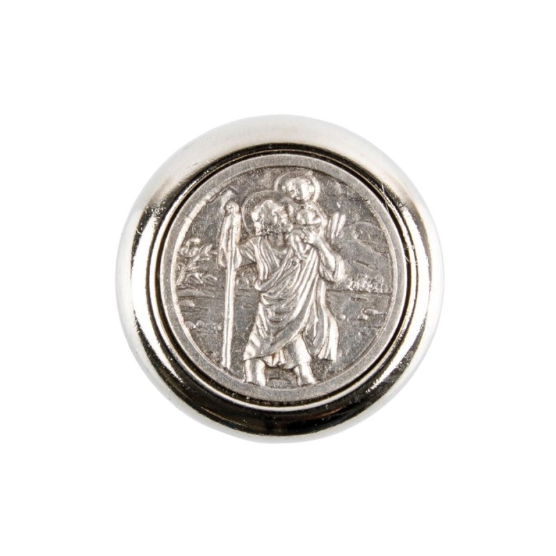 Plaque auto de saint Christophe Ø 3 cm en métal couleur argentée