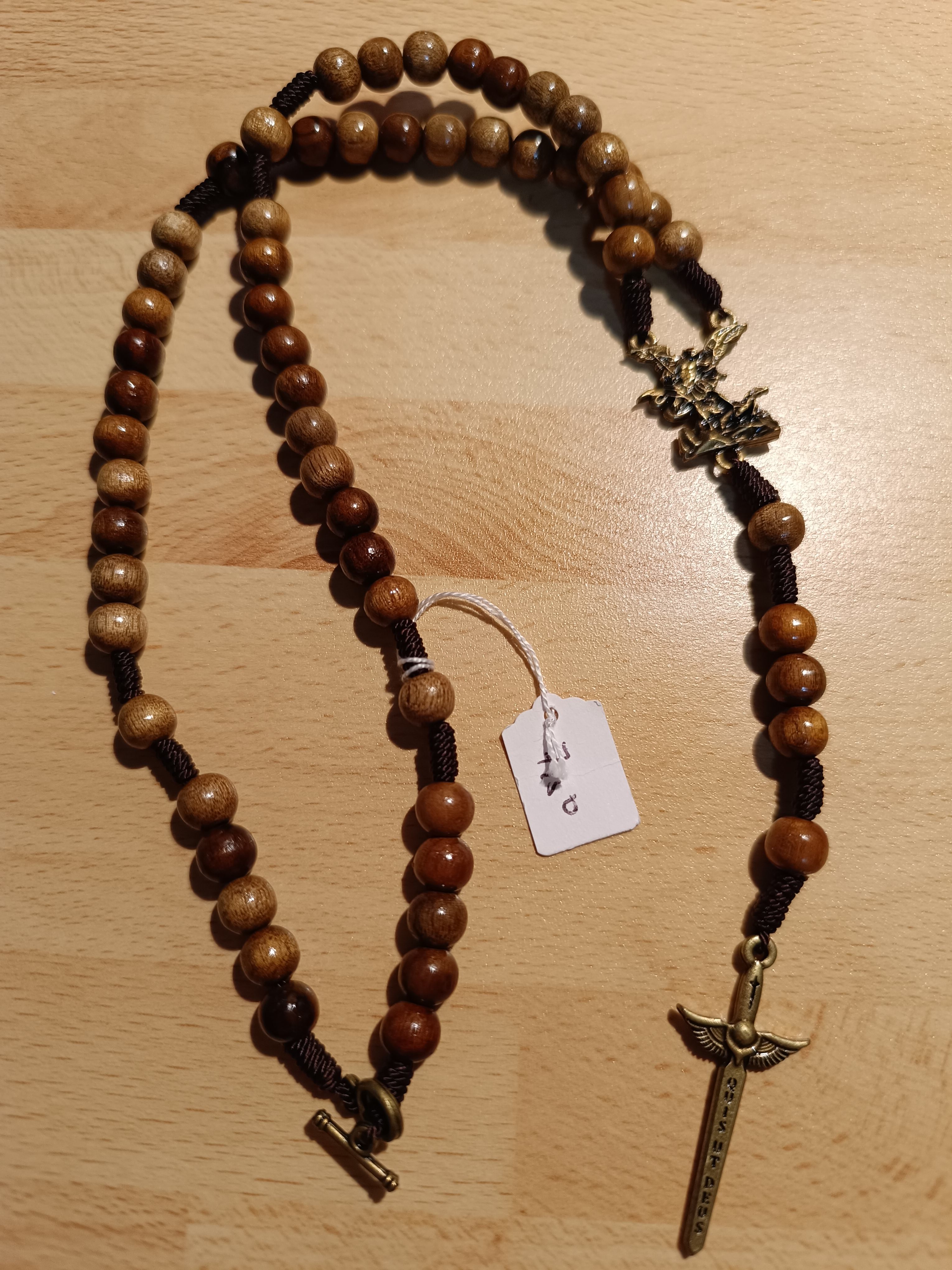 Chapelet bois vernis Saint Michel avec Epée (CH52)