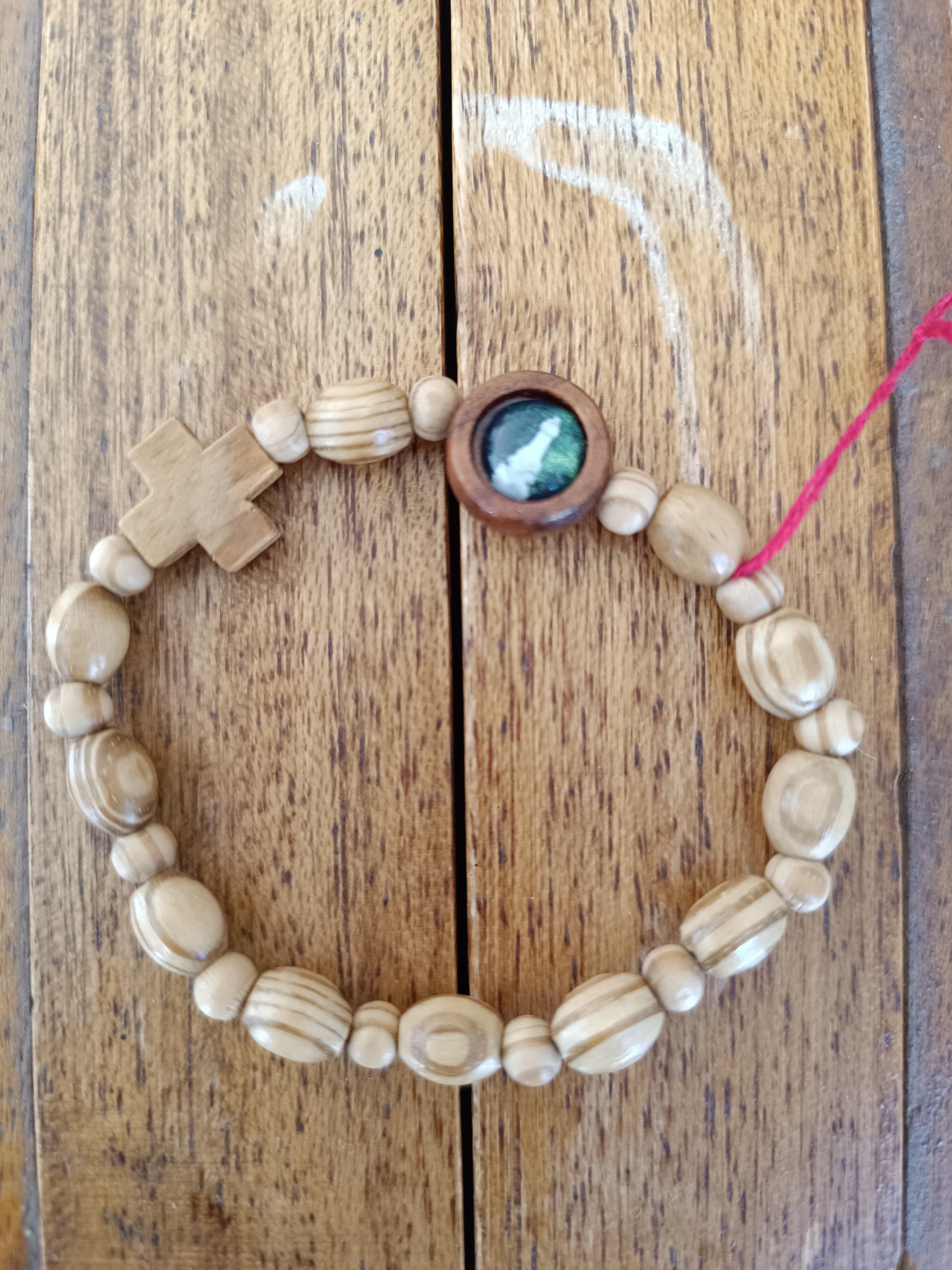 Dizainier bracelet élastique. Grains 7mm en bois avec Croiw et résine Neuvizy Quantité : 1 |