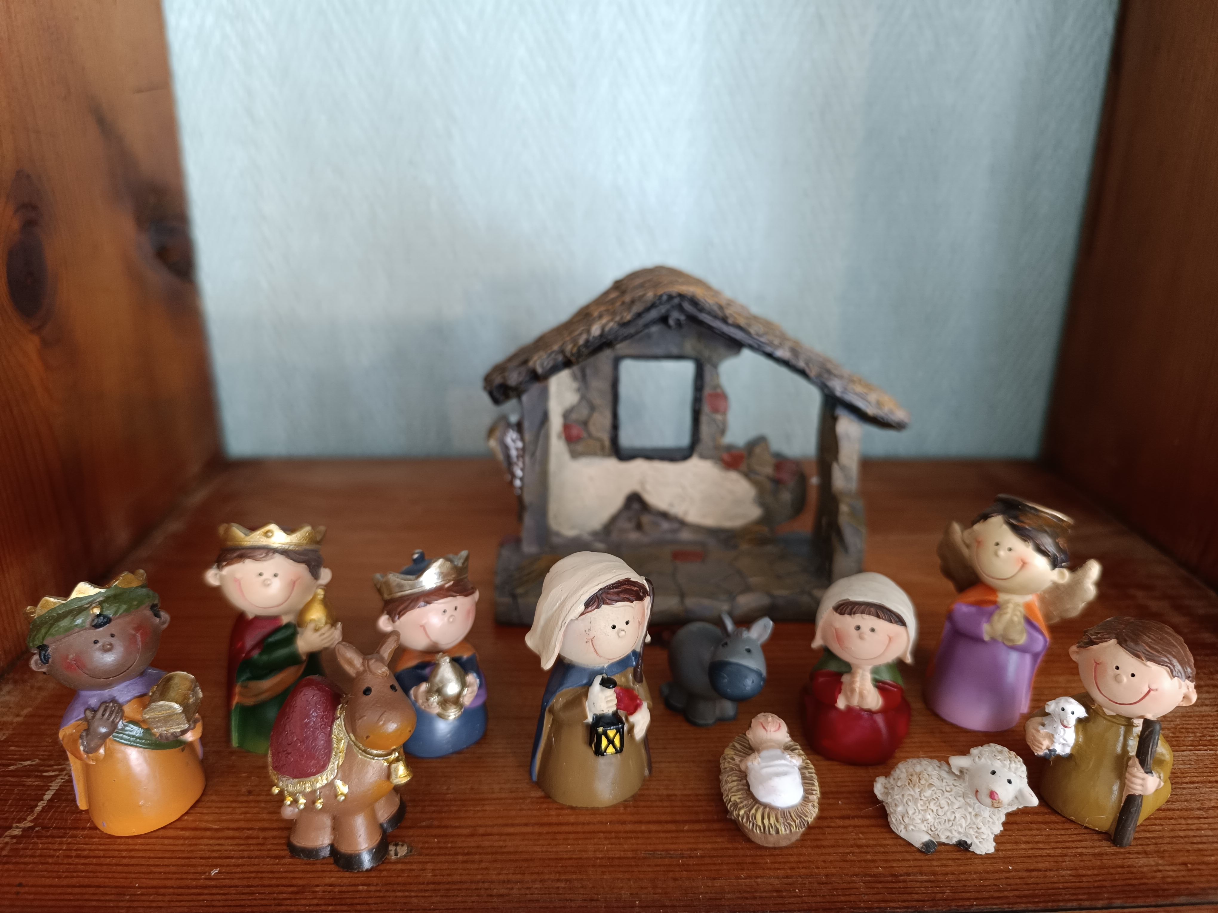 Crèche avec 11 personnages en résine - 5cm avec etable