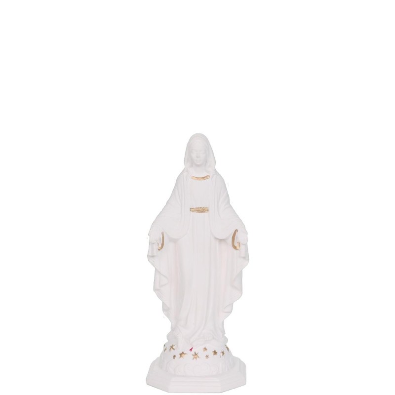 Statue en résine et poudre de marbre blanc avec des touches dorée de la Vierge Miraculeuse. H 9 cm Quantité : 5 |