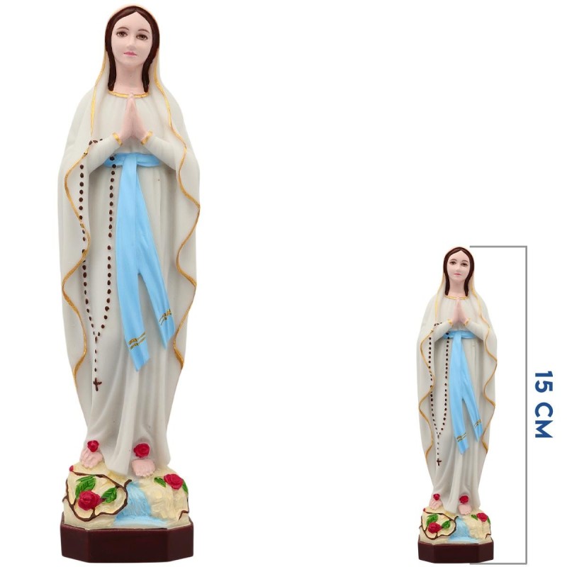 Statue en résine de ND de Lourdes en couleur, peinte à la main – H 15 cm