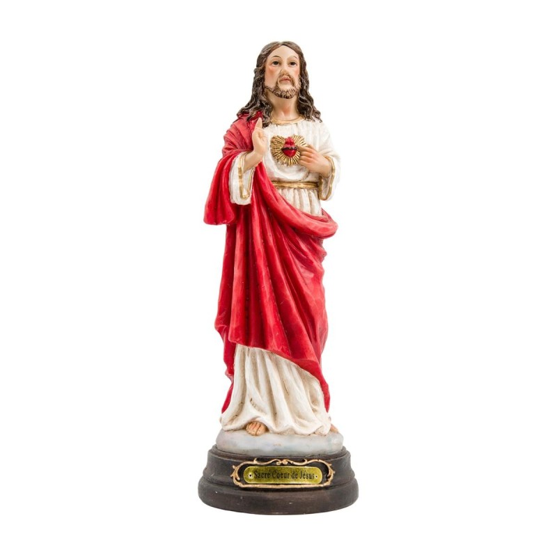 Statue du Sacré-Cœur de Jésus en résine peinte à la main. H. 20 cm
