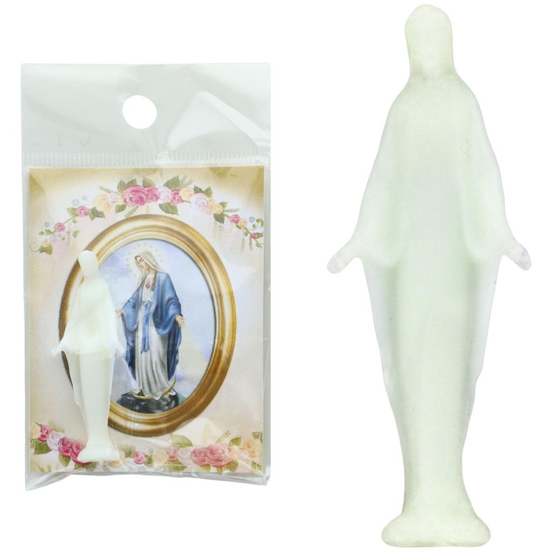 Statuette fluorescente moulée de la Vierge Miraculeuse dans pochette avec carte prière, hauteur 5 cm Quantité : 5 |