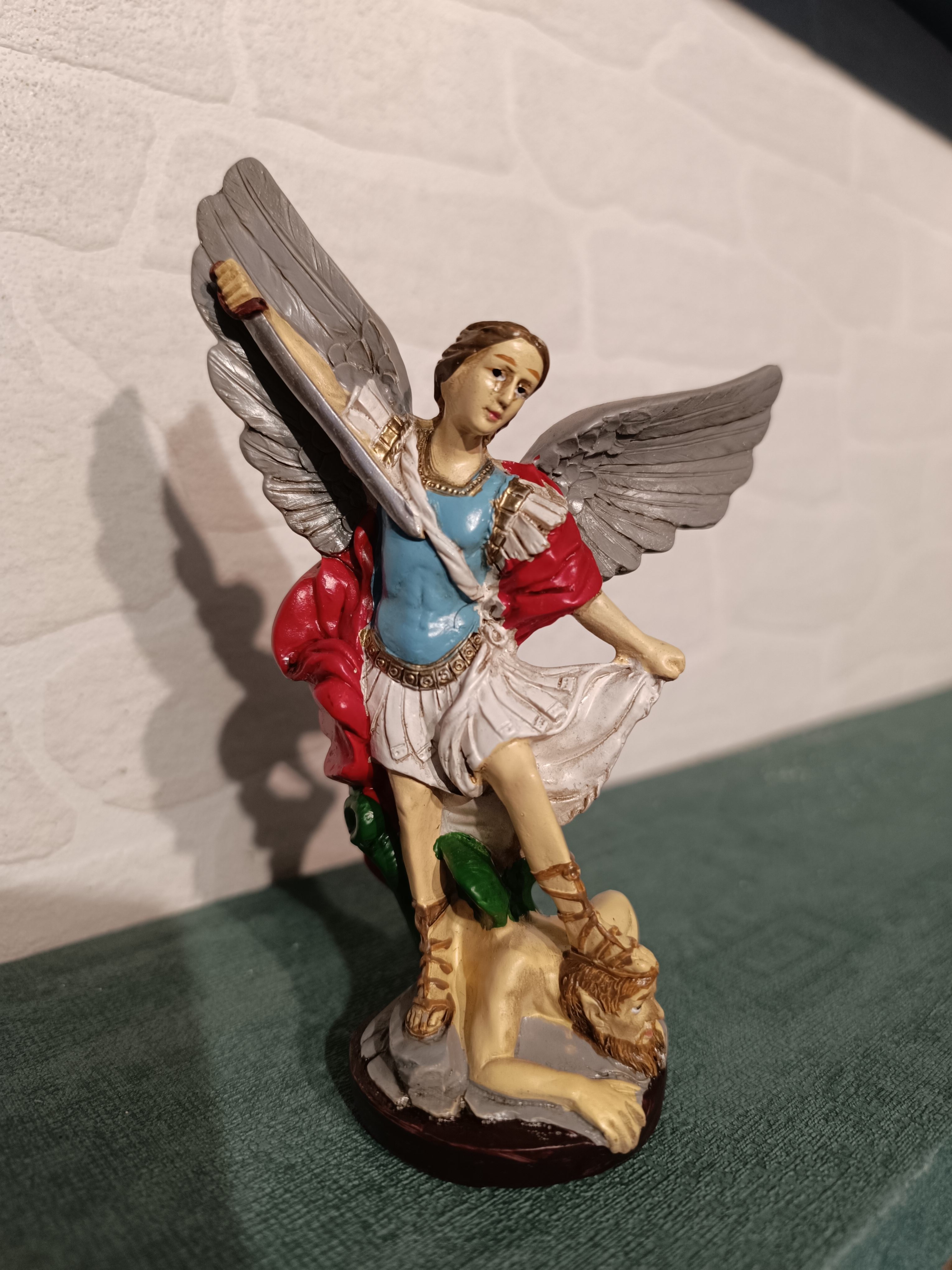 Statue de Saint Michel archange en résine décorée. Hauteur de 16cm
