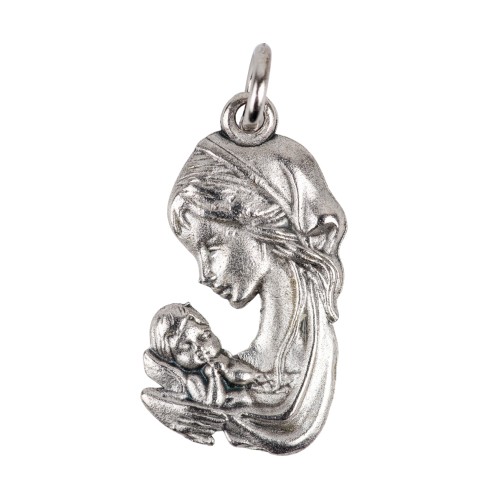 Pendentif de cou représentant la Vierge à lEnfant. en métal argenté Hauteur 2 cm. Quantité : 7 |