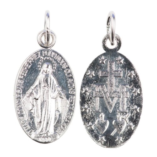 Médaille alliage métal/aluminium couleur argentée H. 1,8 cm de la Vierge Miraculeuse inscription en Français. Quantité : 8 |