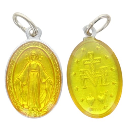 Médaille Vierge miraculeuse résine jaune 1,8cm (PE29)