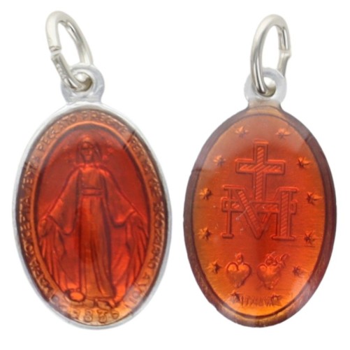 Médaille Vierge miraculeuse Résine rouge 1,4cm (PE35)
