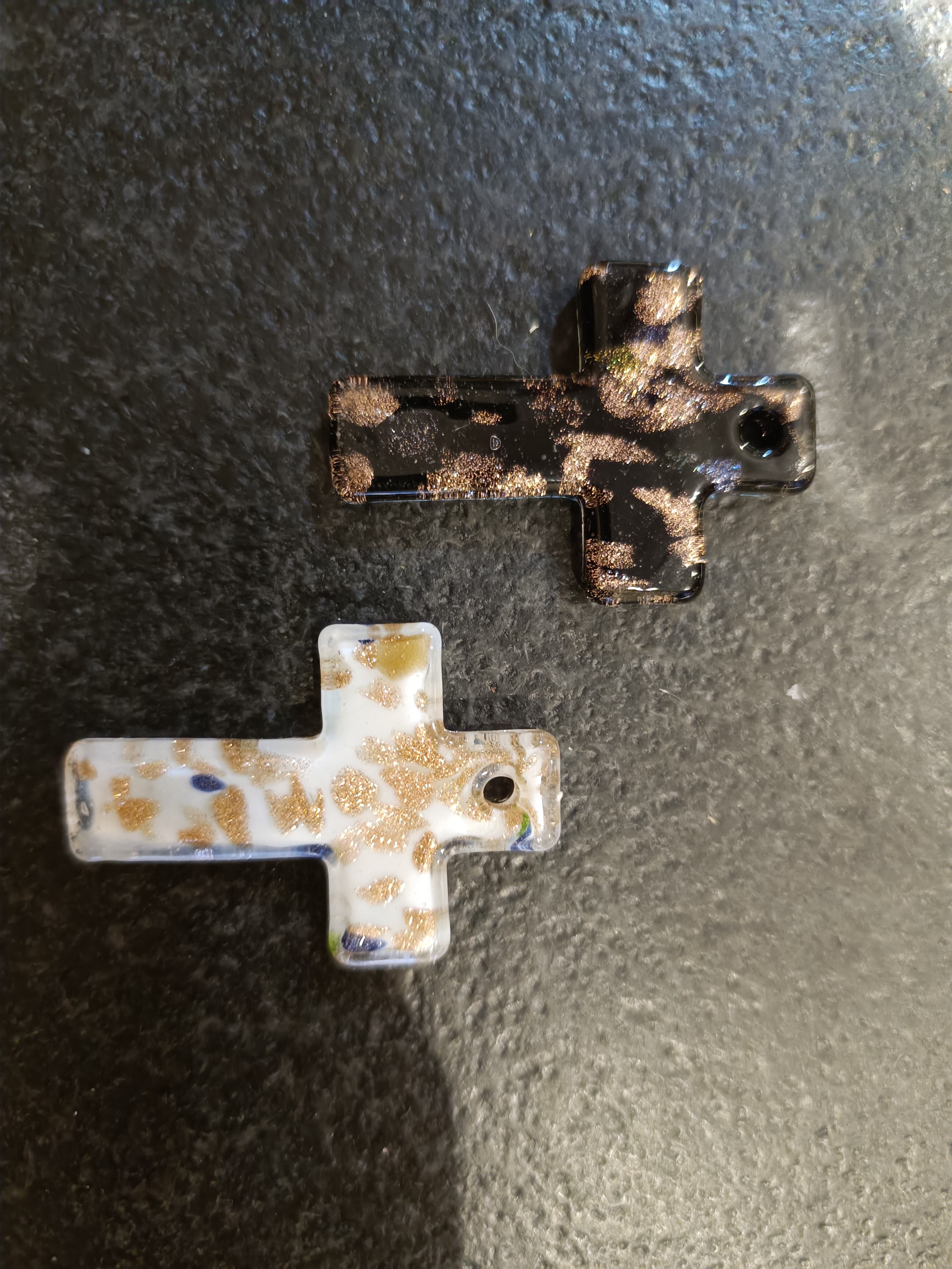 Croix en verre de Murano Inclusion dorée, Couleurs diverses 5cm