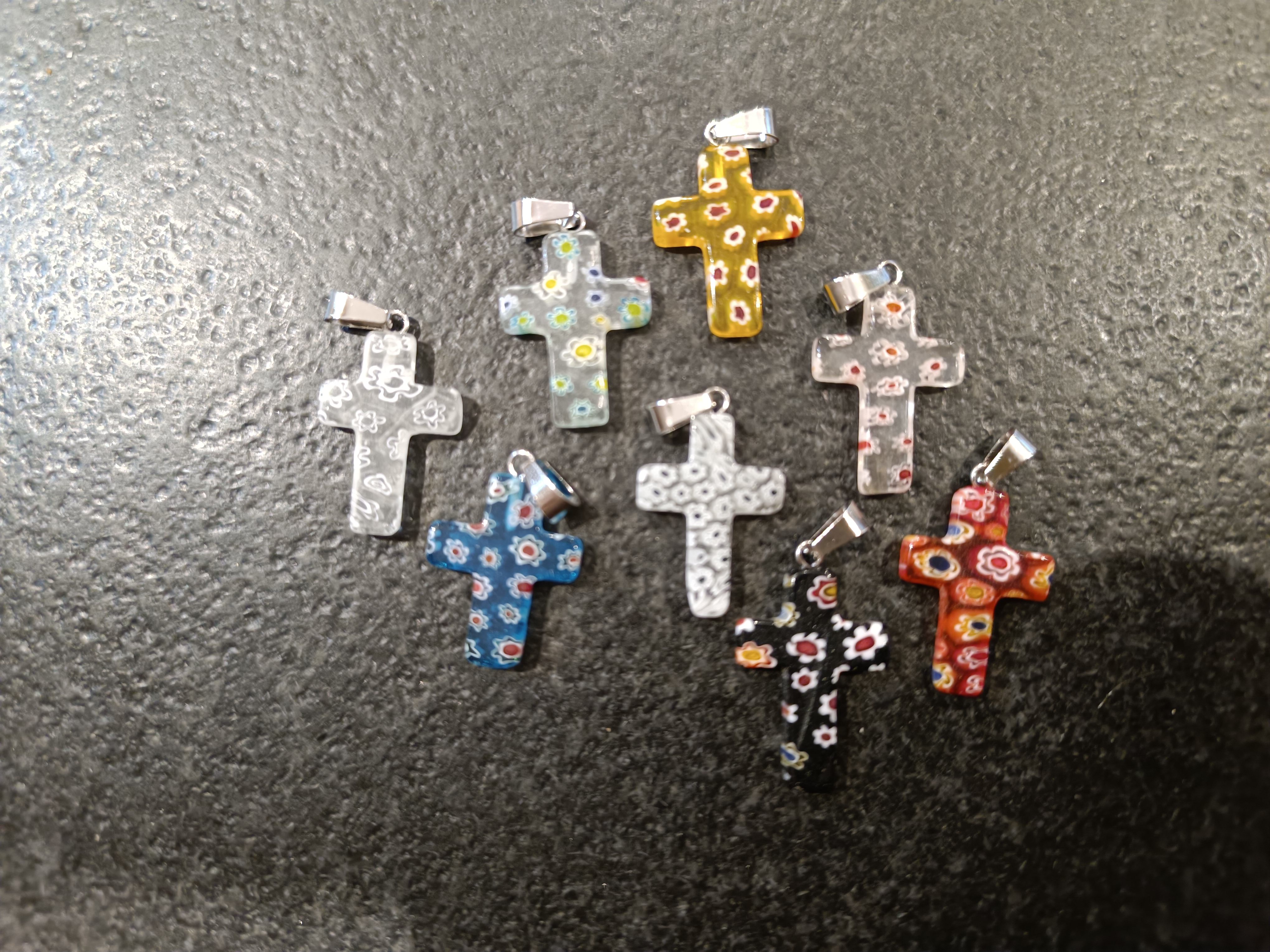 Croix en verre de Murano. Couleurs diverses. 2,5cm