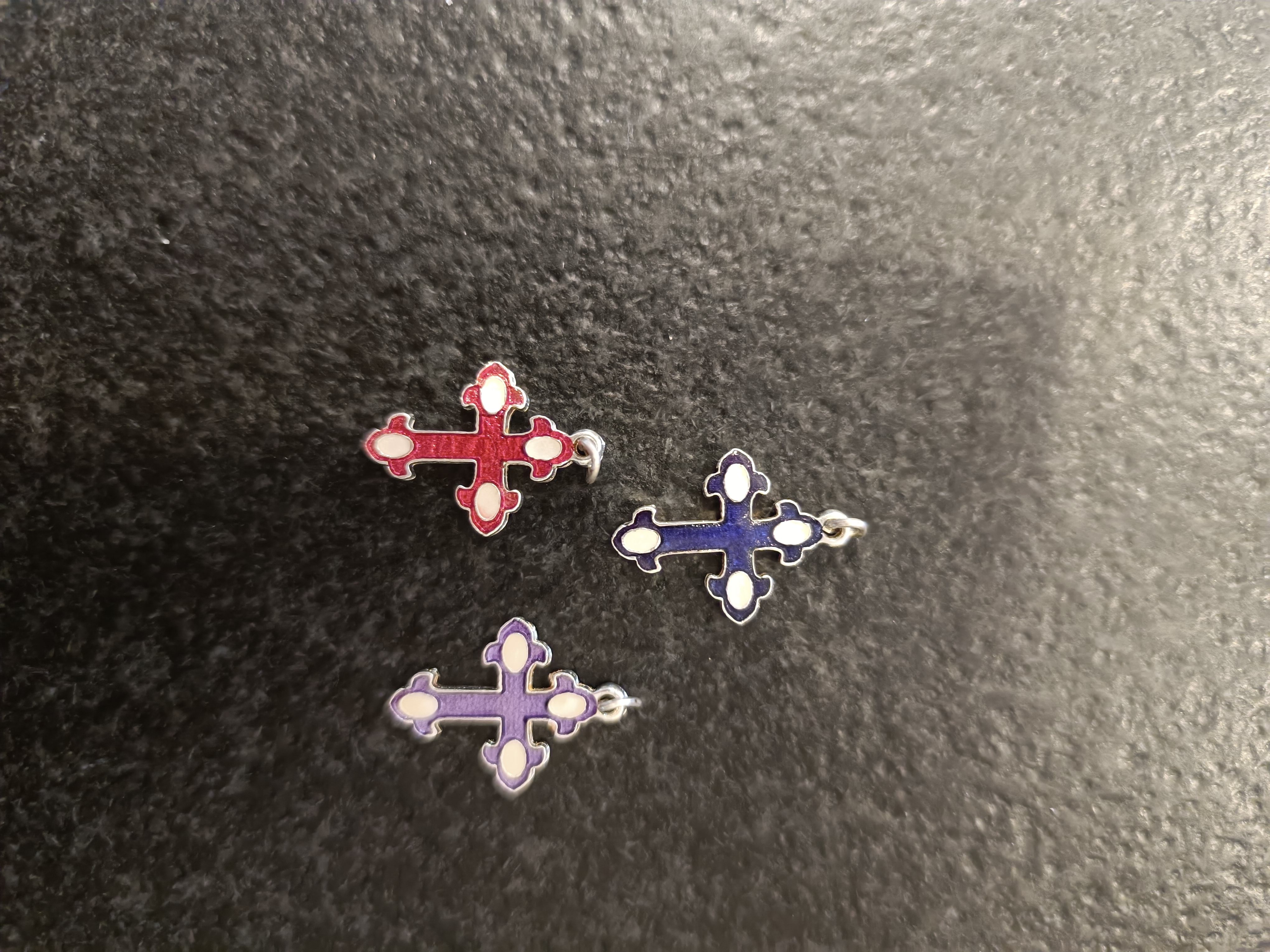 Croix en métal argenté avec inclusion résine de couleur diverse