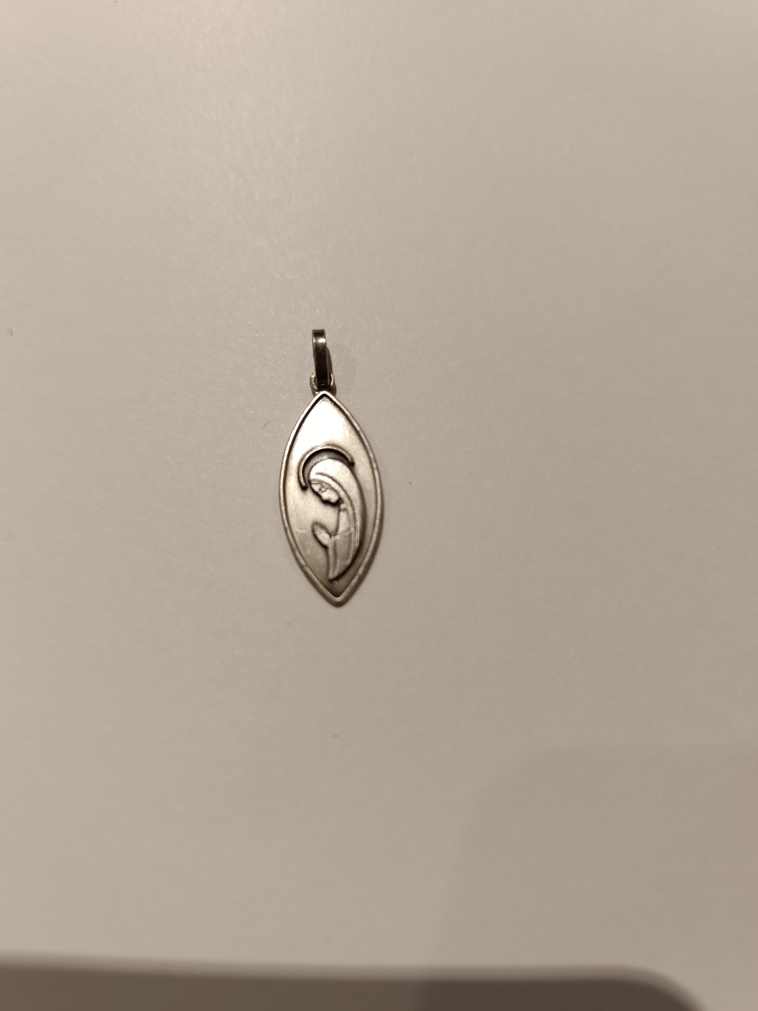 Pendentif en métal argenté ovale pointu Vierge en relief 2,4cm