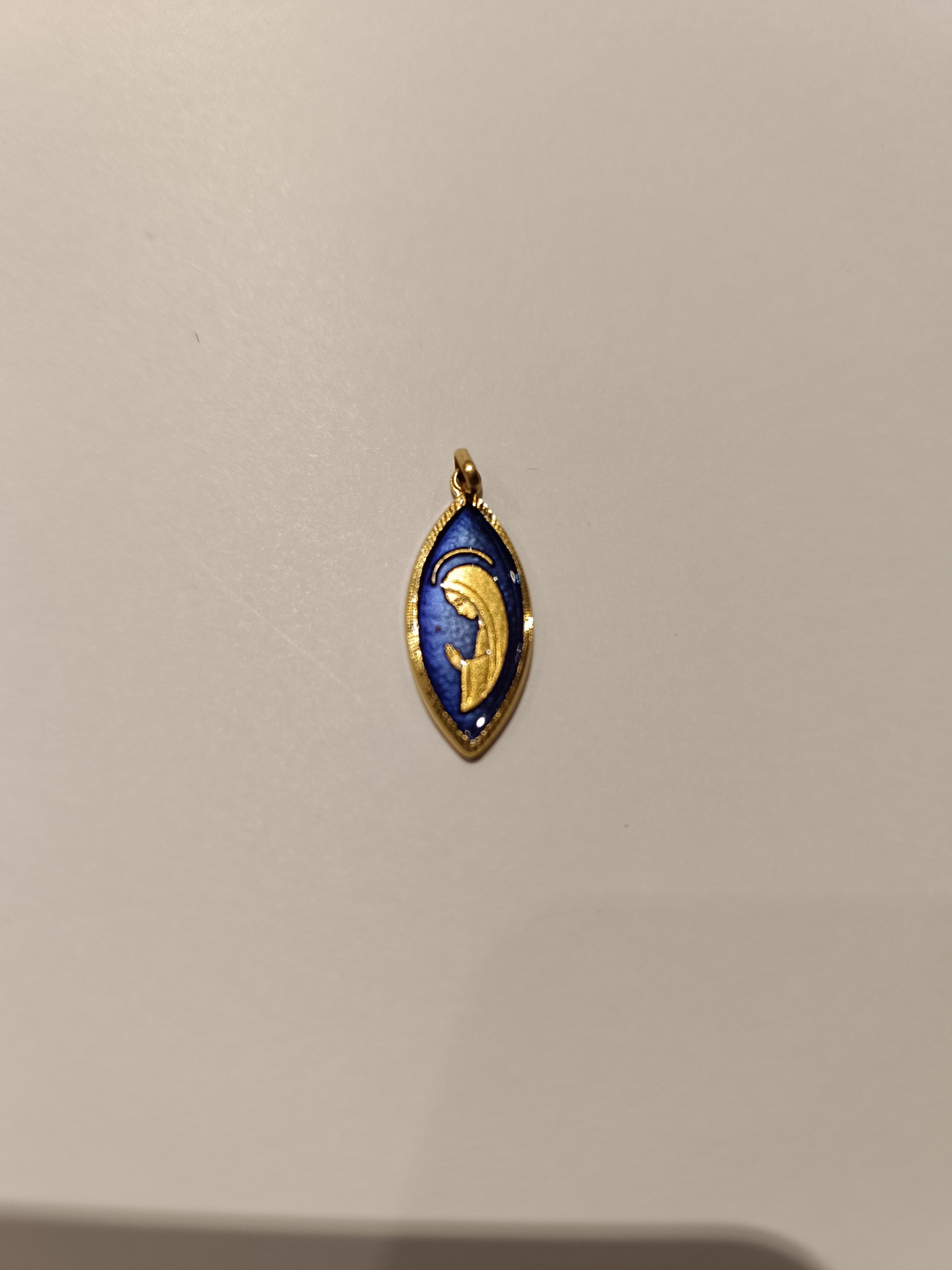 Pendentif Vierge doré ovale pointu Email bleu (PE72)