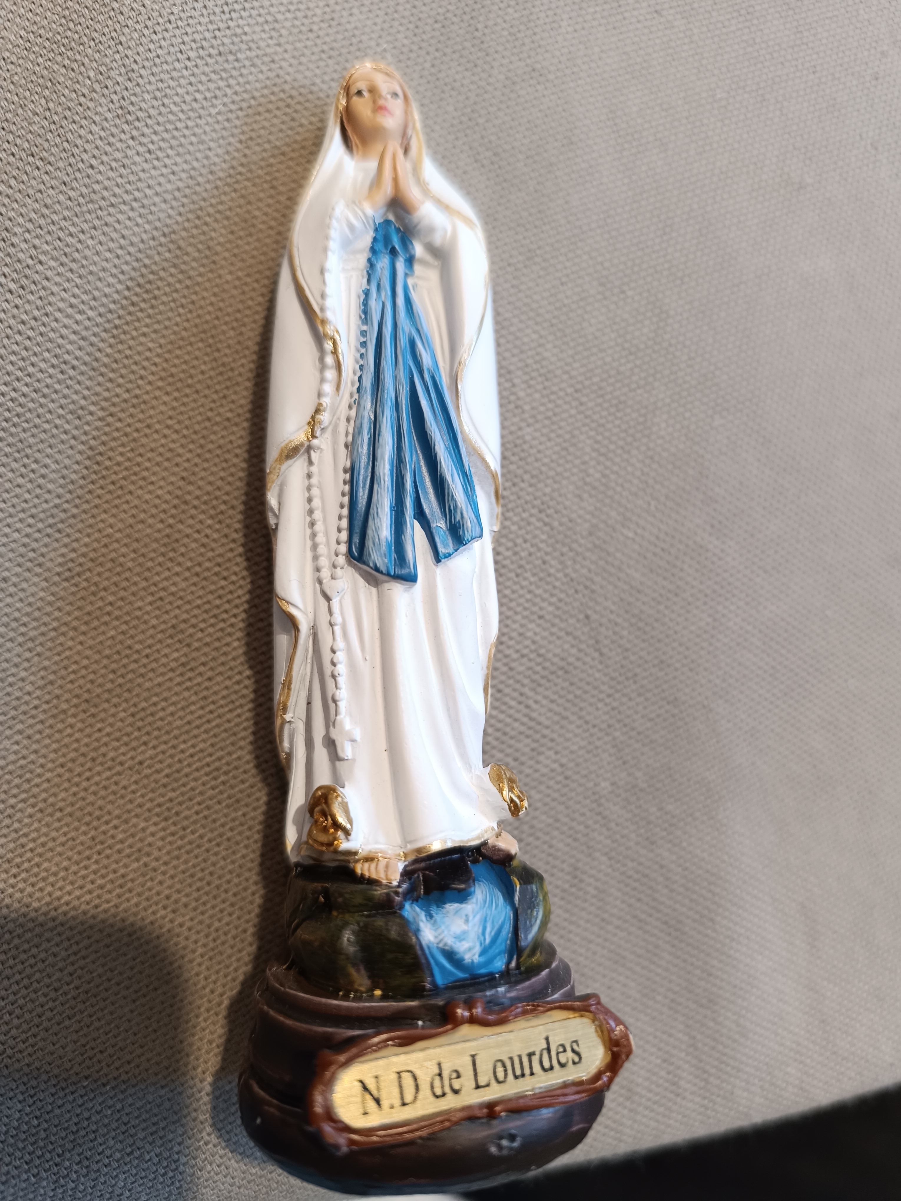 Statue Notre-Dame de Lourdes en résine peinte à la main. H 10 cm
