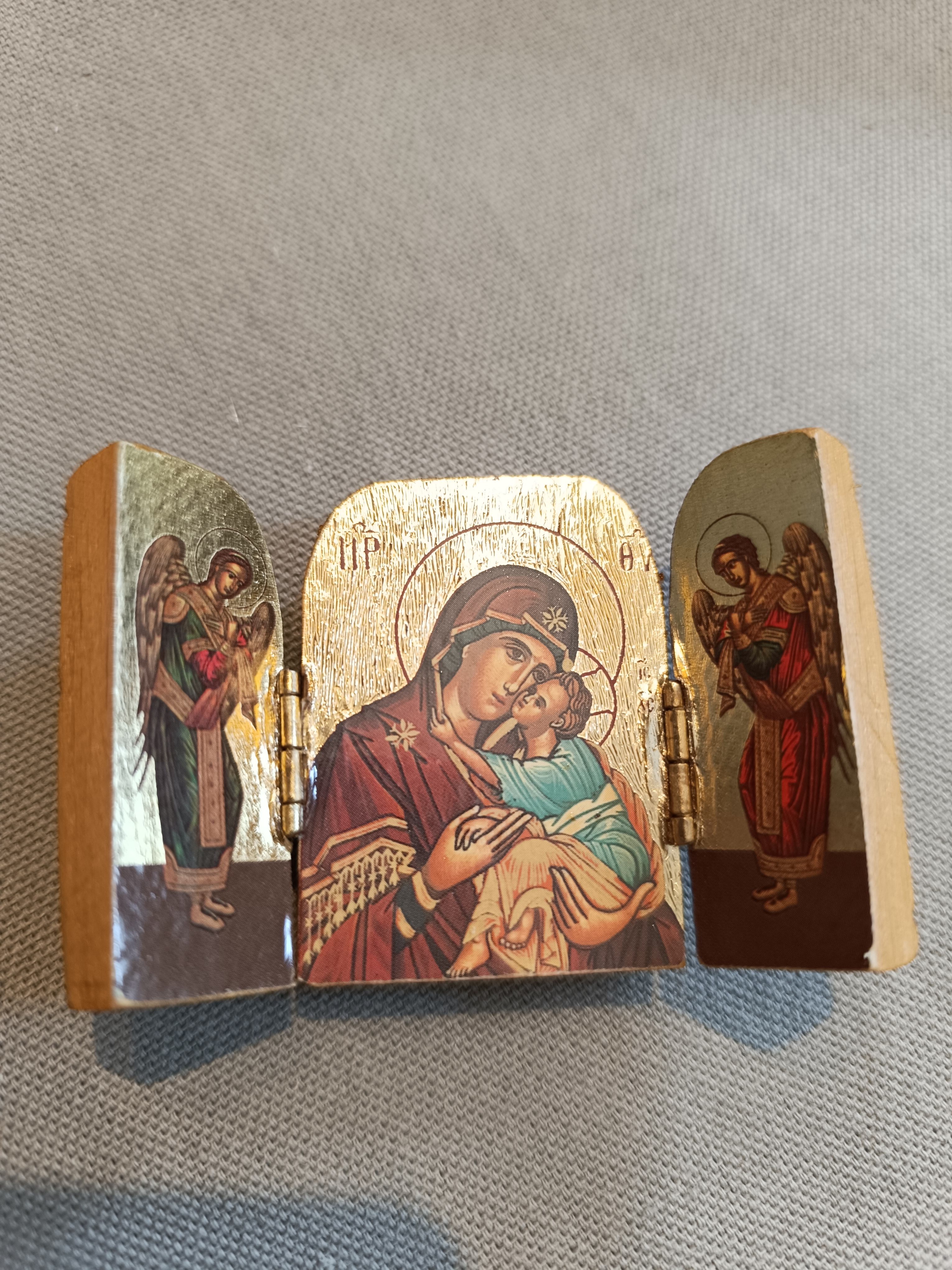 Mini Icone en 3 partie de la Vierge à l'enfant 7x5cm