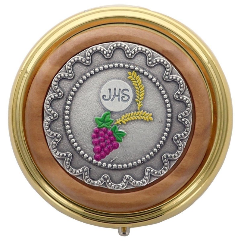 Custodes pour hosties en métal de couleur dorée et bois d'olivier Ø 6 cm Communion Quantité : 1 |