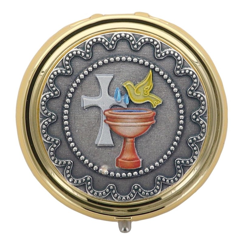 Custodes pour hosties en métal de couleur dorée Ø 5 cm. Bapteme