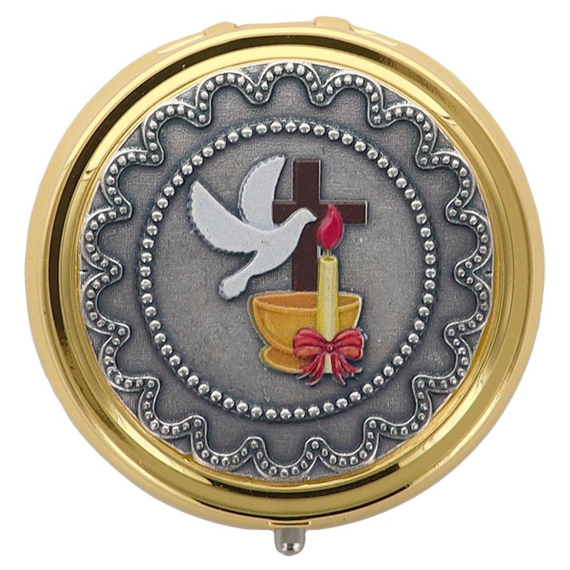 Custodes pour hosties en métal de couleur dorée Ø 5 cm. Confirmation