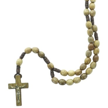 Chapelet avec grains ovoïdes en bois vernis de 6mm sans coeur, avec Christ en métal doré sur croix en bois. Lg 24cm Quantité : 0 |