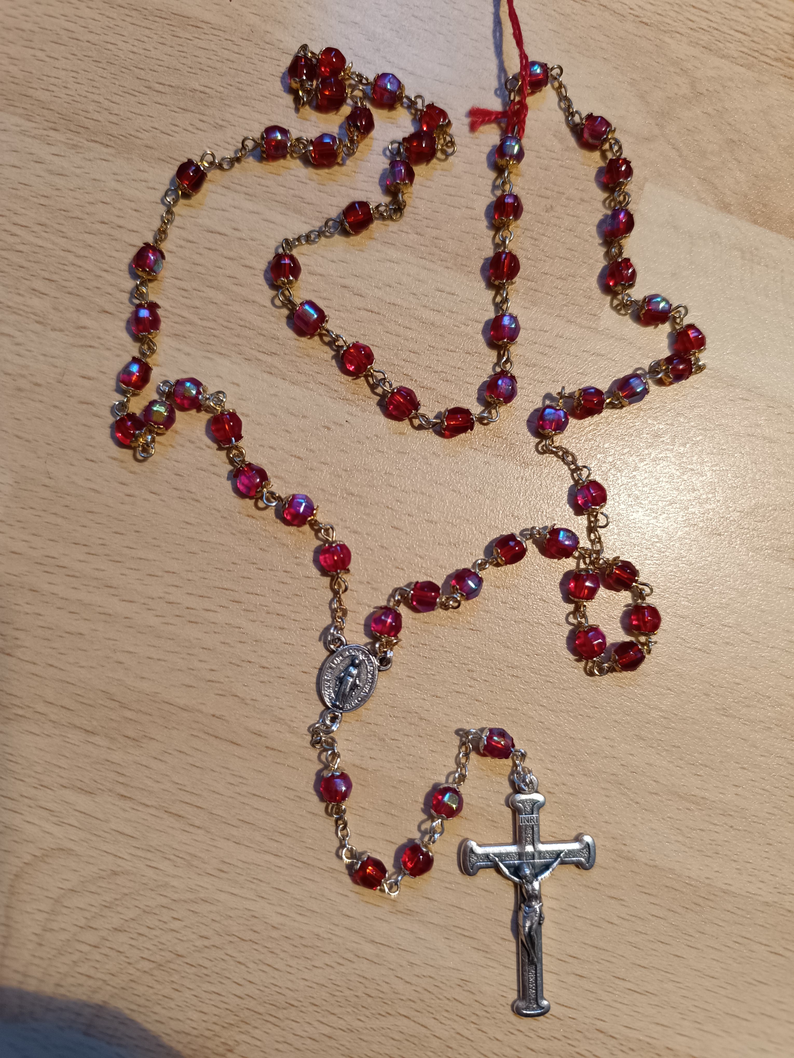 Chapelet métal et plastique rouge imitation cristal (CH55)
